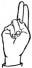 На ћирилици написано АРСЕНИЈЕ ЛУДОШКИ састоји се из 15 слова [?]. Исписано ћириличном једноручном азбуком за глувонеме: